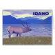 この画像では青い色調が優勢である。アイダホのパンハンドルのペンドオレイユ湖の岸にワピーティとして知られるエルク。文字読の「IDAHO」も登場。