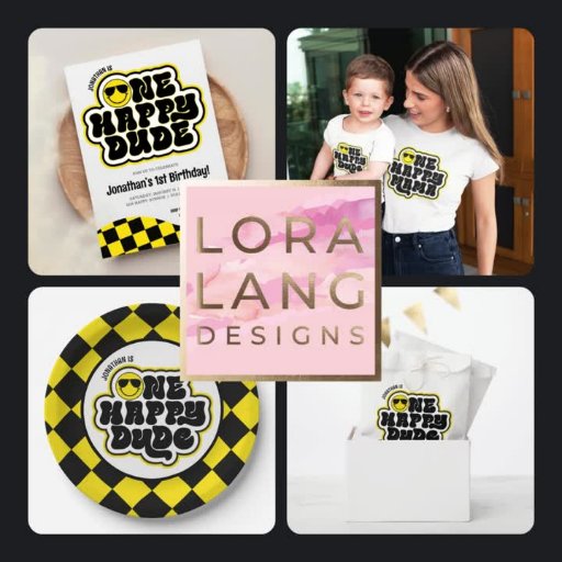 Yellow & Black One Happy Dude Birthday Collectionデザイン: Lora Langowski