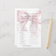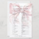 このガーリーと可愛いコケットスタイルブライダルシャワーゲーム – ワードスクランブル。このクラシックゲームでおもしろいアクティビティをブライダルシャワーに追加すると、ゲストは愛と愛に関連する単語のリストをスクランブル解除しようとす結婚る。花嫁のよくはしゃぐ間保に誰もが楽しめ祝る方法だ。このデザインは赤面のピンクボウを「結んでいる!」と組み合わせた特大のピンクの弓を、黒い手書き文字とクラシックセリフのフォントをシックに組み合わせたシックな組み合わせで特徴としている。このタイポグラフィはコケットの魅力を高め、優雅なスクリプトとタイムレスなセリフ文字を組み合わせフェミニンて、見た目をスタイリッシュ楽しめる。完全にカスタマイズ可能で、スクランブルされた単語、フォントの色、および背景を編集して、ブライダルシャワーテーマに合わせることができます。この活動は、任意のお祝いに甘く魅力的なtouchを追加する。