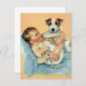 ヴィンテージかわいい男の赤ちゃんとボトルと子犬