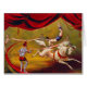 ヴィンテージのポスター広告リングや輪の実行者が付いているサーカス。 曲芸師は馬でピエロが旗を握る間、行います。 ギブソン及びCo.による元の19世紀な(1875年の)石版から。 複製権所有©の2013年のpadreの芸術