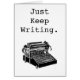 この予測できない、ヴィンテージインスパイアメッセージカードは1906年からのタイプライターの白黒イラストレーションを特色にします。 "ちょうど保ち働くことを保つために執筆"を、です作家、作家、ブロガーおよびジャーナリストのための完全な勇気付けられるカード読取機構!