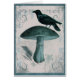 ヴィンテージのティール(緑がかった色)のワタリガラスのきのこカード