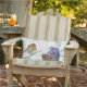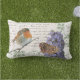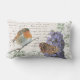 モダンなヴィンテージの自然の写真の芸術。 原稿および柔らかい緑のダマスク織の背景の質のロビンの鳥、buddlejaの花および蝶。 屋外の枕。
