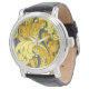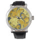 ヴィンテージはっきりしたチューリップブルー金ゴールドパターン 腕時計