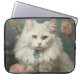 ヴィンテージふわふわの花入り白猫 ラップトップスリーブ