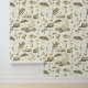 ヴィンテージよくはしゃぐフォレストマッシュルームフログベージュホワイト 壁紙