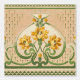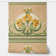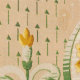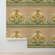 アールヌーボースタイル。大小の様式化された緑のスクロールメダリオンを交互に。大きなメダリオンの内側には黄色い花の大きな花束がある。小さなメダリオンには一つの花がある。
