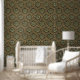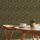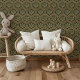 ヴィンテージアールヌーボーエレガントグリーン&金ゴールドパターン 壁紙
