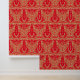 ヴィンテージアールヌーボーレッドロブスターライオン顔パターン 壁紙