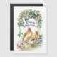 黄色のアヒルやヒナを咲くクローバーのアーチの下に置いた可愛い復元ヴィンテージカード「ハッピーイースターを願う」文字。