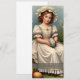 ヴィンテージの服を着たエレガント少女が木の丸太に座り、美しいイースターの卵を抱え飾ている。花が咲き誇る花と不思議なウサギに囲まれたシーンは、暖かさと懐かしさとイースターの精神を醸し出している。