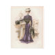 ヴィンテージエドワーダのファッションイラストレーションは、キツネの毛皮を持つ女性の時代の衣装を着ている。
