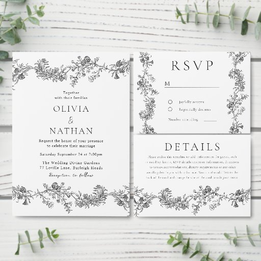 ヴィンテージエレガンスクラシック:ブラック&ホワイトのア結婚クリル招待状ニッチとネストストアのマッチングコレクションを参照