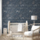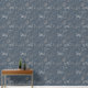 ヴィンテージエレガントブルーグレー馬花パターン 壁紙