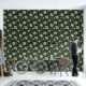 エレガントヴィンテージWilliam Morrisインスパイアの壁紙は、黒い背景にティール(緑がかった色)と緑の離れイラストを備えた。