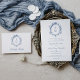 ヴィンテージクレストモノグラムボタニカルブルー結婚ズ 招待状