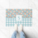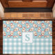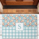 ヴィンテージサンタブルーギンガムクリモノグラムのスマス ドアマット