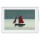 赤い帆を張ったヴィンテージのヨットがカーディフ湾を横切る。