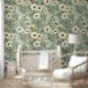 ヴィンテージデイジーフローラピールとスティックベビーブルー 壁紙