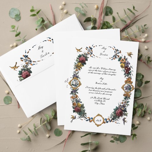 ヴィンテージバロックロココフローラカルトゥーシュRSVP 招待状