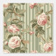 ヴィンテージビクトリアンピンクのバラの緑のパタストライプのーン 壁紙
