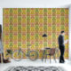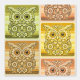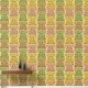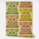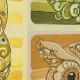 このデザインは、大きな丸い目をした様式化フクロウを特徴としている。フクロウの体は、フローラと円形のモチーフで複雑に構成され、装飾効果を生み出す。カラーパレットには、茶色の暖かい色合い、金ゴールド、ベージュ、ソフトピンクの微妙なヒントが含まれる。オリーブグリーンストライプのとライトグリーンを交互に背景に、このアートワークは自然とジオメトリをシームレスに組み合わせる。