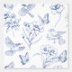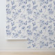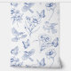 ヴィンテージブルー&ホワイトフローラバタフライバードトイル 壁紙