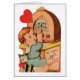 レトロ/ヴィンテージバレンタインのグリーティングカード。可愛らしい小さな男の子がラジオをチューニング!愛の歌のバレンタインに"チューニングイン"!