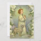 ヴィンテージイラストレーション宗教デザインは、イエス・キリストを子羊の羊飼いとして描いている。クリスマスホリデーシーズンの冬の雪のシーン。