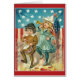 ヴィンテージ愛国的グリーティングカード。旗と火と太鼓で愛らしい男の子と女の子!我々の運命が何であれ、旗の子どもらは我々なのだ!