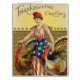 オリジナルヴィンテージ感謝の挨拶イラストレーション女性と七面鳥。グリーティングカードのデザインで私の店に高品質もっと商品を!-->