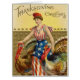 オリジナルヴィンテージ感謝の挨拶イラストレーション女性と七面鳥。