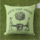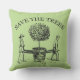 ヴィンテージイラストレーションは、ポットに若い木を持つ2人の男性を示す+伝統的レタリング(カスタマイズ不可): "救the Trees".地球の一日の原因のための完璧な屋外枕。カスタマイズ可能な枕のボタンを押すと、画像の背景色、サイズ、位置をクリック簡単に変カスタマイズ更できる。