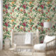 ヴィンテージ熱帯花鳥ピンク緑パターン 壁紙