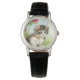 ヴィンテージ白と茶色の子猫と花 腕時計