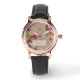 レディースパーソナライズされたは素朴で質感のあるかわいらしルックの背景にヴィンテージの花のパターンを持つ時計。