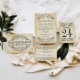 装飾的な渦巻き及び繁栄エレガントこのヴィンテージのインスパイア応答カー結婚ドデザインをフレームする。素朴なアイボリーの背景は、テクスチャ付きの熟成された羊皮紙紙の外観で印刷される。返信期限カスタムを指定してRSVP文字をカスタマイズする。このバージョンには、ゲストが自分のめっきエントリの好みをイニシャルできるようにリストされたディナーオプションが含まれる。