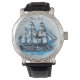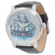 船の船長のために。セーリング船のデザインであなたの個人的な沿岸シックなスタイルを強化。それは複数のマストと帆が外海を航行し、船の索具と旗が見え、動いているように見える。太陽を表す可能性がある右上の角から放射される光線と、コンパスのバラ記号が隣接している。あなたの服装に完璧なファッションを航海の追加する。