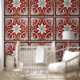 ヴィンテージ赤と白イタリアンタイルパターン 壁紙