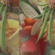 アンティーク本イラストレーションから適応し、私はあなたのヴィンテージスタイルファームハウスキッチンの壁を飾るためのこのおいしいシームレスなパターンを作成した。この画像はメロン、トマト、セロリ、トウモロコシ、緑豆、ニンジンが含まれている。