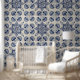 パイ色彩の鮮やかス、イタリア、ポルトガルのハンドタイル。完成パターン。幾何学的なモザイクの青と白の花のタイルのアートワーク。完璧な装飾デザイン、任意の大事な行事のための理想的な贈り物。
