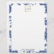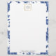 1201AMまでにヴィンテージブルーとホワイトフローラルパターンビジネスカードテンプレートとコーディネート。このデザイパーソナライズされたナーレターヘッドはヴィンテージブルーと白パターン(の模様が)あるの縁どで、タイムレスな外観をエレガント特徴としている。金属製のフェイク金ゴールド枠ボックスの上部に名前または会社名が表示され、アドレスと情報は下部に中央に表示される。デザインby 1201AMデザインスタジオ | www.1201am.com