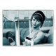 夏の都市の背景に車の中に座っている美しい若いヴィンテージの女性の3Dデジタル、青い色