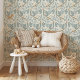 クラシックの魅力のtouchを持って自宅に"ヴィンテージ鳥とつる植物"壁紙。このエレガントデザインは、複雑なつる植物やフローラモチーフに覆われた様式化された鳥を特徴とし描写て、ソフトクリームの背景に青とトープの穏やかな色合いを持つ。調和のとれた色彩と繊細な模様の調和は、時代を超越した美しいと静謐さを感じさせ、どの部屋でも穏やかで魅力的な雰囲気を作り出すのに最適。リビングルーム、ベッドルーム、ダイニングエリアに最適な、この壁紙は、ヴィンテージエレガンスと自然の優雅さのtouchを追加するインテリアの装飾。