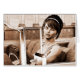 夏の都描写市の背景に車の中に座っている美しい若いヴィンテージの女性の3Dデジタル