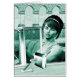 夏の都市の背景に車の中に座っ描写て、美しい若いヴィンテージの女性の3Dデジタル、緑の色