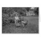 ガラスオリジナルネガから高解像度でスキャンしたプレート写真。愛らしい小さな女の子が庭に建ち、雄鶏が荷車に繋がれている!絶対大切に。これは一種のオリジナル画像だ。あなたの庭のパーティーのための完璧なカード。カスタマイズ文字の内側。簡単。楽しむ.
