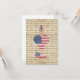 アメリカの女の子とアメリカが大好き。ハートとアメリカ国旗の地図がヴィンテージのダメージ紙の背景にプリントされている。名前やテキストを追加することで、この愛国的なアメリカのデザインを簡単にカスタマイズできる。