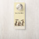 紙ドアハンガーは黄色で、茶色と白の猫と猫の群ストライプのが雪の中に傘の歩くを持っている。前カスタマイズと後ろのテキストとテンプレート。